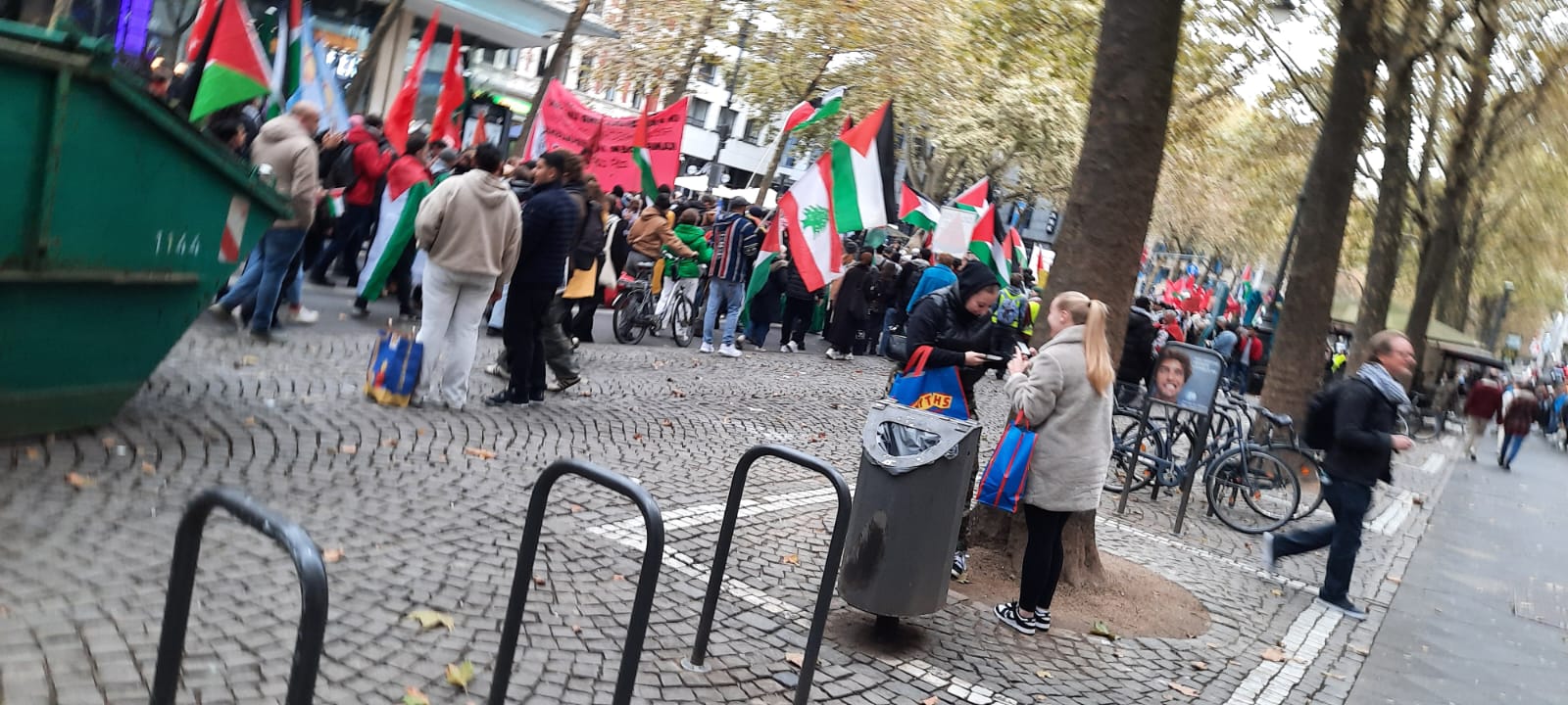 Filistin – Gazze’de İsrail Siyonizminin 1 yıldır devam eden soykırımı protesto edildi. Alman gençliğinin yoğun olarak katılım gösterdiği protesto yürüyüşünde Almanya’nın İsrail’i finanse ederek soykırımdaki rolü de sık sık sloganlarla dile getirildi. Enternasyonal dayanışma ve mücadele bayrağının yükseltilmesi çağrıları eşliğinde, İsrail Siyonizminin soykırımı lanetlendi.